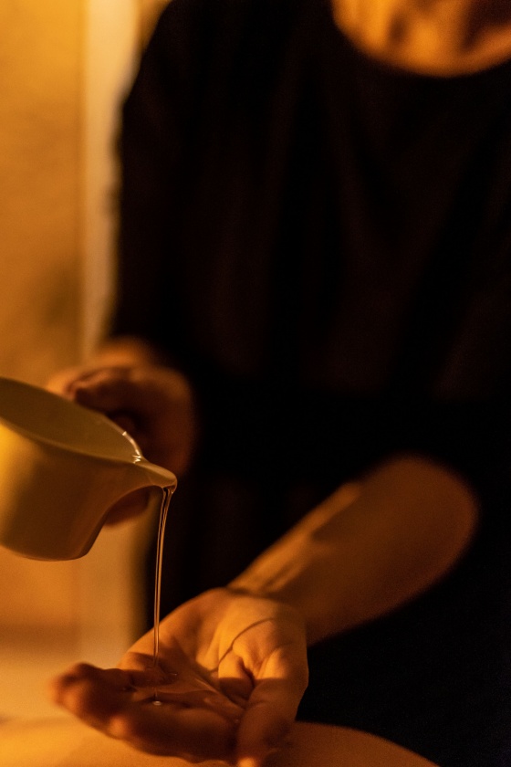 Ziołowe oczyszczenie w połączeniu z głęboko relaksującym ajurwedyjskim masażem ciała. Detoksykacja skóry poprzez peeling ziołowy w połączeniu z olejem ziołowym to prawdziwe oczyszczenie oraz wygładzenie. Niesamowity efekt jedwabnej skóry idealnie przygotowanej do dotyku ciepłym olejem sezamowo – ziołowym, by uczcić ten stan wyjątkowym Ajurwedyjskim masażem ciała to niezwykły czas bycia dla siebie. Rytuał równoważący ciało i umysł w aromacie ziół.